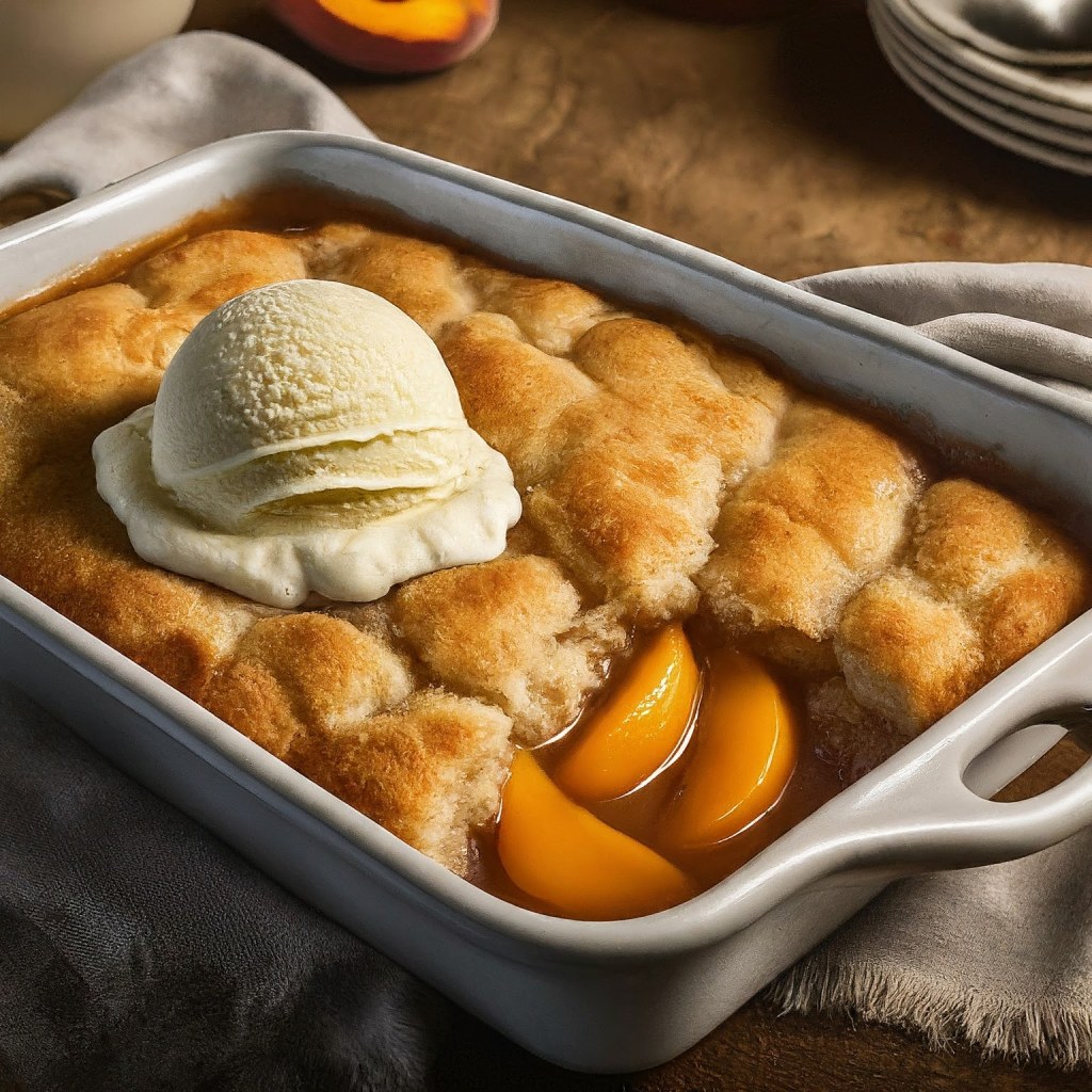 This peach cobbler is best served warm, straight from the oven. Pair it with a scoop of vanilla ice cream or a dollop of whipped cream for an extra indulgent treat.